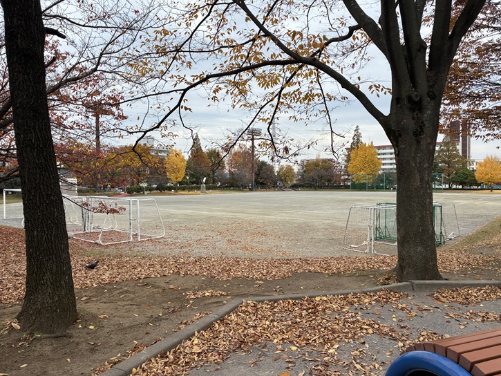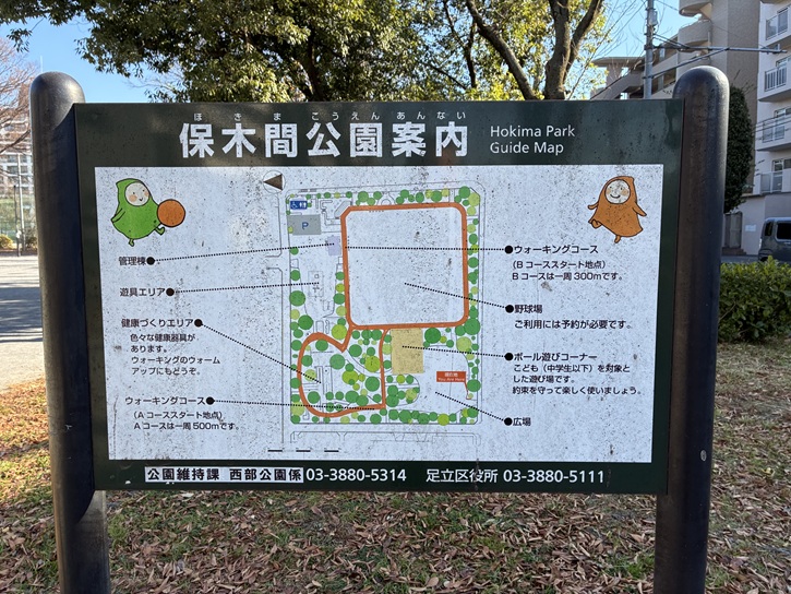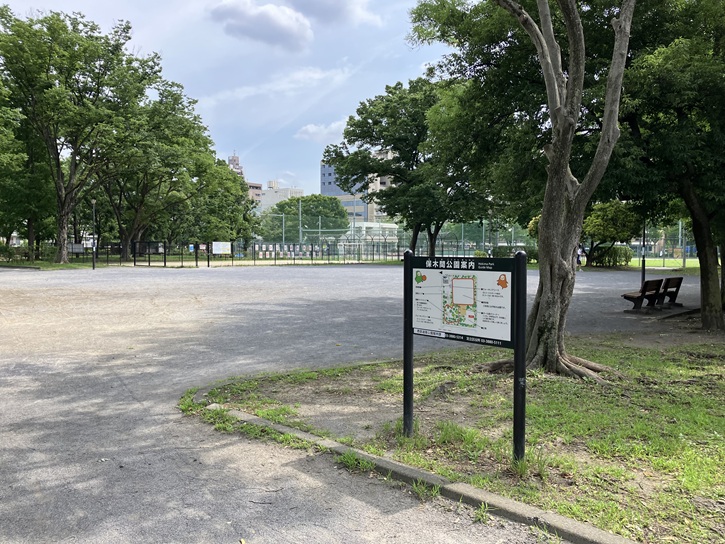 国道4号線(日光街道)の手前に保木間公園があります。保木間公園は広々とした面積を持つ運動公園で、地域の人たちが集う憩いの場所になっています。