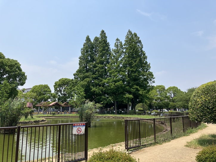元淵江公園のシンボル的な存在が、高さ20mを超えるメタセコイヤの並木です。
