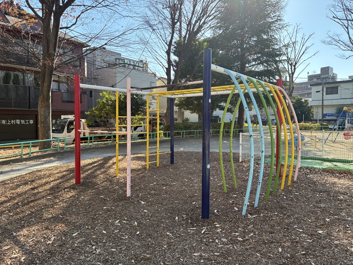 竹の塚エリアには、第一公園から第九公園まで、家族連れや子供たちが楽しめる魅力的な公園が点在しています。それぞれの公園には、ユニークな遊具やリラックスできるスペースがあり、憩いの場となっています。竹の塚第七公園は、竹ノ塚駅東口から駅前広場の南側に沿って進み、竹の塚けやき大通りの最初の信号を右折し、商店の続く通りで左折すると、突き当たりに公園が見えてきます。公園内には、雲梯(うんてい)や鉄棒が複合されたカラフルな遊具・恐竜のスプリング遊具や小さい子供向けのブランコ・フェンスで囲われた砂場などが設置されていて、幅広い年齢の子供たちが楽しめる公園です。