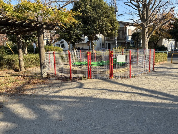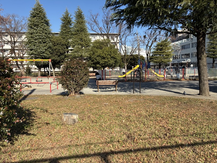 団地に囲まれた小さな公園ですが、ブランコや砂場なども設置されています。