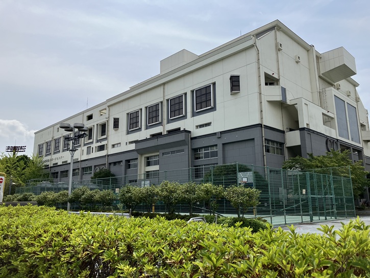 総合体育館は、昭和五十四年(1979年)4月1日に竣工し、地上5階建てで面積は約1万平米あります。総合体育館の屋内施設としては、観覧席380席を備えた床面積1、512uの大体育室・床面積540uの小体育室・床面積450uの剣道場・床面積225uの柔道場・射場80uのアーチェリー場・射場124uのエアライフル場・アスレチックルームなどがあります。