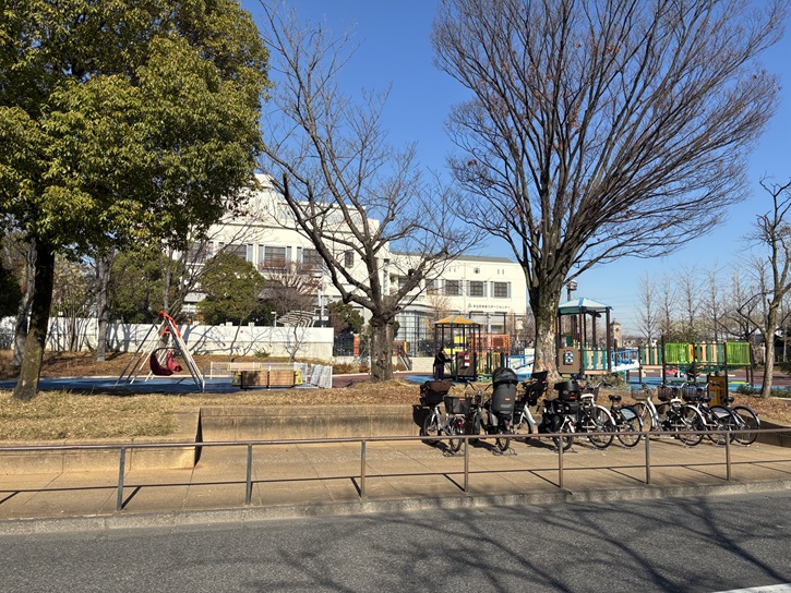 公園内には、ラッコやうさぎのスプリング遊具があり、小さな子どもでも楽しめるような工夫が施されています。ブランコは2つともお尻をカバーするバケットタイプのもので、幼児向けになっています。その他、滑り台・シーソー・砂場など、一通りの設備が揃っています。また、日除け付きのベンチがあり、公園内に大きな木々が沢山植わっていて日陰が多いため、暑い日でも快適に過ごすことができます。トイレは象がデザインされ、子どもにも親しみやすく、家族で公園遊びが楽しめます。周辺にはスーパーやホームセンターがありますので、ショッピングのついでに立ち寄ることもできます。
