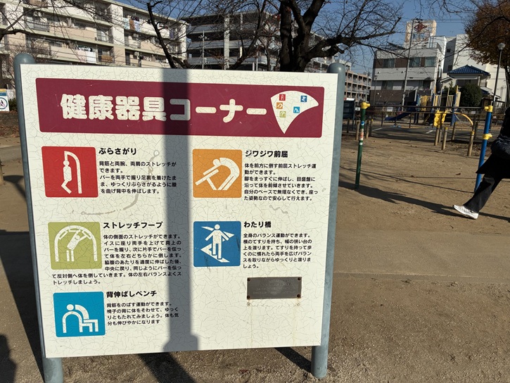 広場の脇には、健康遊具コーナーがあります。