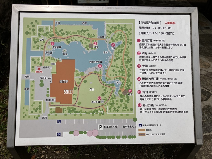 園内には滝・池・小川・築山などが設けられ、庭園巡りが出来るようになっています。