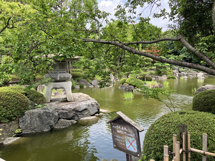 花畑公園の西側には、足立区制定50周年を記念して造成された「花畑記念庭園」という回遊式の日本庭園があります。