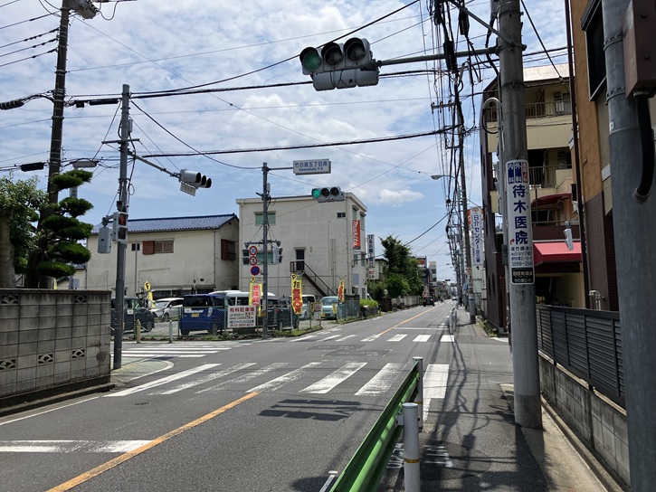 竹の塚3丁目交差点で国道4号(日光街道)を渡ります。日光街道は、江戸時代に設けられていた五街道のひとつで、日本橋を起点とし、日光坊中(日光東照宮)に至る街道です。道中には21の宿場が置かれ、日本橋から宇都宮までの道程は奥州街道と共通でした。この区間にはもともと古道奥州道がありましたが、日光街道の開通とともに日光街道と称されるようになりました。現在でも、国道4号の宇都宮市以南と、国道119号の通称として用いられています。