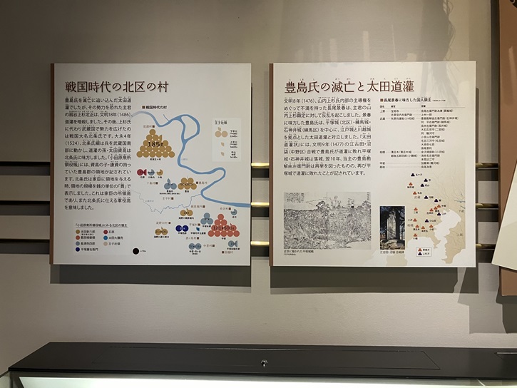 文明八年(1476年)、山内上杉氏内部の主導権をめぐって不満を持った長尾景春は、主君の山内上杉顕定に対して反乱を起こしました。景春に味方した豊島氏は、平塚城(北区)・練馬城・石神井城(練馬区)を中心に、江戸城と川越城を拠点とした太田道灌と対立しました。「太田道灌状」には、文明九年(1477年)の江古田・沼袋(中野区)合戦で豊島氏が道灌に敗れ平塚城・石神井城は落城、翌十年、当主の豊島勘解由左衛門尉は再挙を図ったものの、再び平塚城で道灌に敗れたことが記されています。
