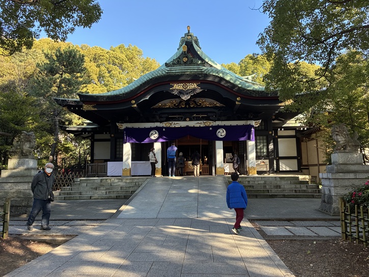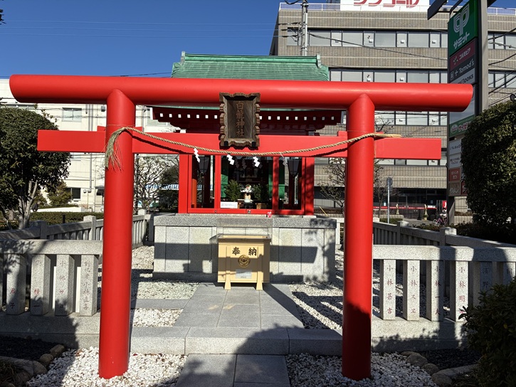 日本橋兜町の第一銀行構内にあった洋風の珍しい社です。明治三十年(1897年)の第一銀行改築時に現在地に移築されました。その後、昭和四十一年(1966年)に破損が激しく、危険ということもあって取り壊されましたが、基壇部分や灯籠等は現在まで残されています。この社は、最初、三井組の為換座として新築された時、三井の守護神である向島の三囲神社から分霊を勧請し、兜社と名付けられたものでした。その後兜社は、為換座の建物と共に第一国立銀行に引き継がれたのです。