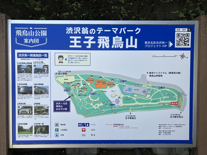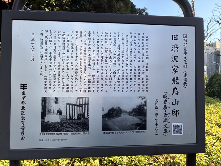 「飛鳥山公園」の東側の入り口横に渋沢栄一が住んだ邸宅の案内板が立っています。