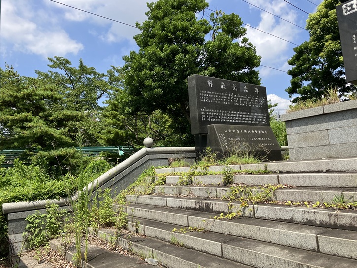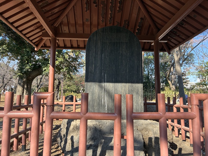 公園の北側の奥にも、厳重な囲いの中に巨大な碑が建っています。石碑の上に並べられた丸い球には意味があります。