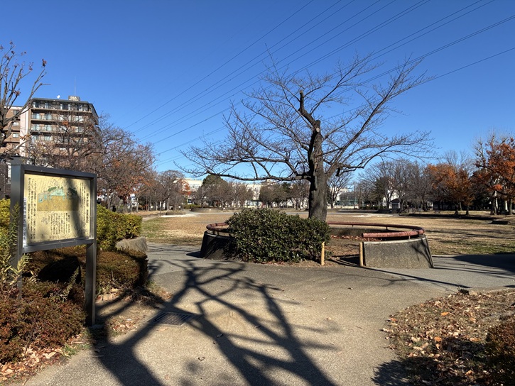 園内の中央には円形の芝生広場があり、周囲を桜並木が取り囲んでいます。