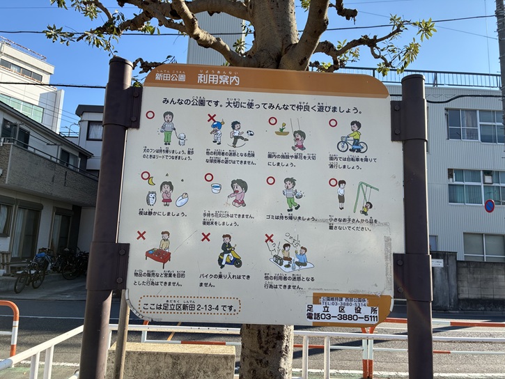 谷在家公園から江北六丁目交差点を渡り、環七北通りのひとつ南側の小路に入ります。住宅街の中に上沼田北公園があります。
