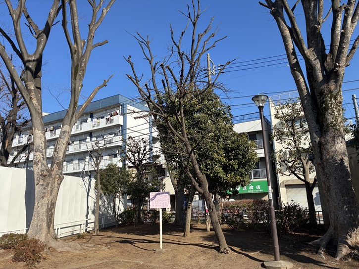 谷在家北公園は、足立区立鹿浜第一小学校に近接する区立の公園です。江北北部土地区画整理事業によって公園が整備されました。面積2062平方メートルの敷地内には、数多くのサクラが植栽されています。例年3月下旬から4月上旬のシーズンには、公園は一面サクラ色に彩られます。地域の代表的なお花見スポットとして、満開のときには大勢の花見客で賑わいます。