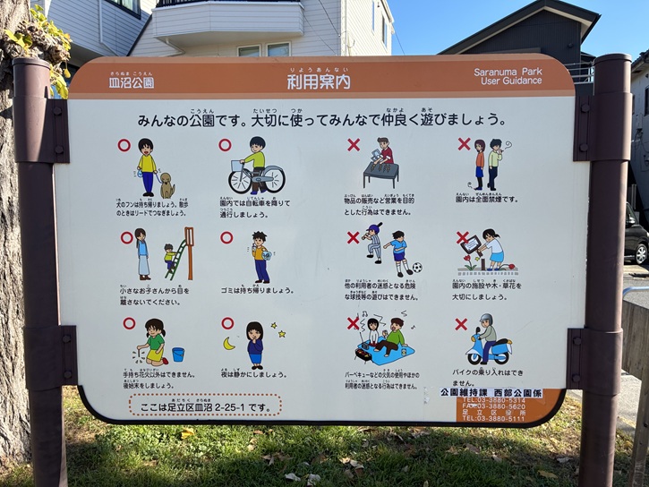 皿沼公園は皿沼小学校に隣接し、面積は6、234平方メートルあります。緑の芝生の広場が整備され、周囲には樹や花が植えられています。広場を囲むように、すべり台やブランコ・コンビネーション遊具などの様々な遊具が点在し、どの遊具もカラフルな色彩をしていて、子ども達が元気に遊んでいます。