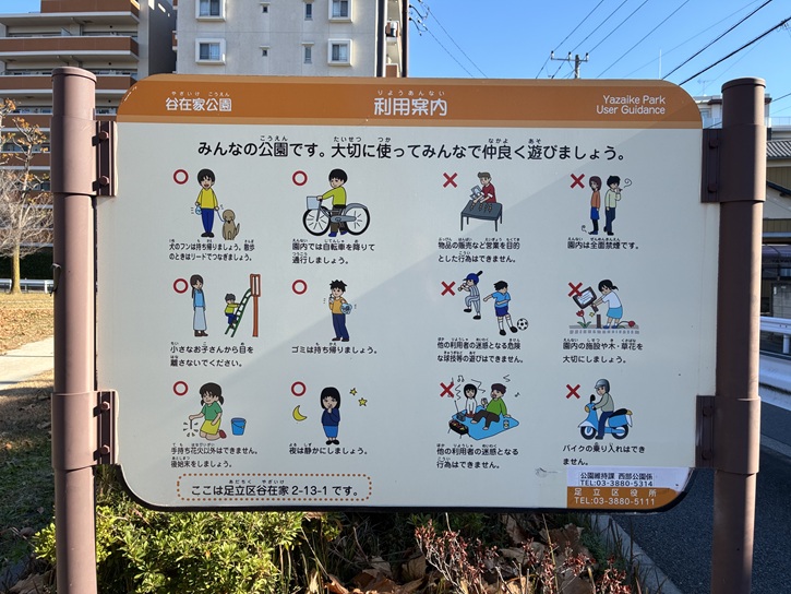 谷在家北公園は、足立区立鹿浜第一小学校に近接する区立の公園です。江北北部土地区画整理事業によって公園が整備されました。面積2062平方メートルの敷地内には、数多くのサクラが植栽されています。例年3月下旬から4月上旬のシーズンには、公園は一面サクラ色に彩られます。地域の代表的なお花見スポットとして、満開のときには大勢の花見客で賑わいます。