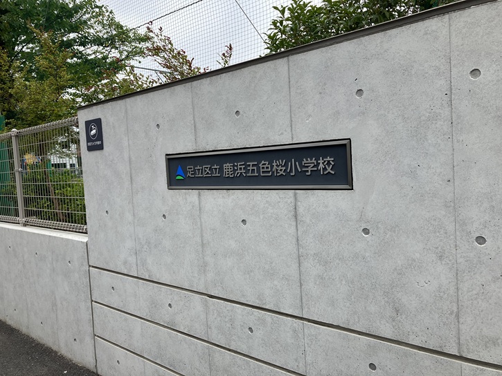 鳩ヶ谷街道に面して、鹿浜五色桜小学校の真新しい校舎が建っています。鹿浜小学校は学区域内の就学児童数の増加が見込めず、更に、鹿浜小学校の最も古い校舎の耐用年数も迫っていたことを踏まえて、旧上沼田小学校と平成二十七年(2015年)4月に統合されました。鹿浜小学校の名前は消滅し、統合後の校名は「鹿浜五色桜小学校」となりました。統合された2校の内、鹿浜小学校の「鹿浜」は残りましたが、上沼田小学校の「上沼田」は残らず、代わりに「五色桜」が充てられました。鹿浜小学校の校舎は建て直され、旧上沼田小学校の仮校舎に間借りしていた児童は平成二十九年(2017年)4月1日に新校舎に移転しました。