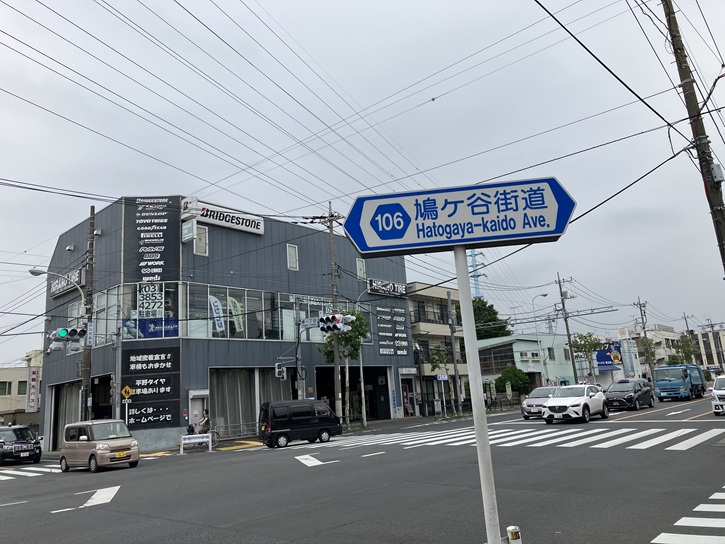 鳩ヶ谷街道は、足立区江北の荒川沿いの高速川口線が上を通る都道107号線の江北氷川神社前交差点から足立区入谷の埼玉県境に至る延長4kmの南北方向の都道です。環七通りの南側は往復1車線の一方通行路で、高速川口線が上を通る都道239号線との重複区間は6車線、その前後は2車線の道路です。鳩ヶ谷街道の道路名は、足立区が平成四年(1992年)の足立区制60周年記念で愛称として定め、平成二十六年(2014年)に東京都の通称道路名になりました。