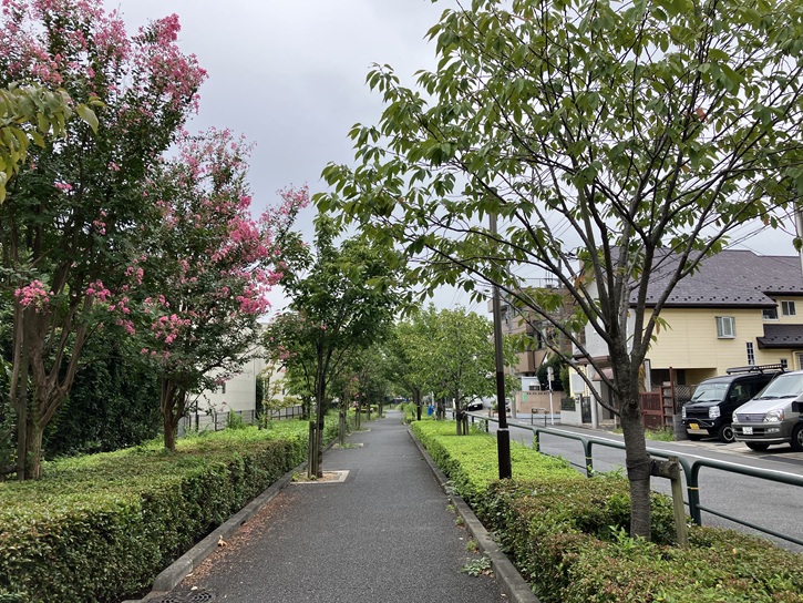 緑道の右手に、皿沼小学校があります。この辺り一帯の地名「皿沼」ですが、「皿」は開墾地や乾地を意味し、「沼」は沼沢地や湿地帯を指します。このことから、皿沼は開墾された沼地や湿地帯であったと考えられます。
