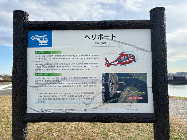 災害時に物資の輸送の拠点となる「リバーステーション」、その物資の輸送路となる「緊急用河川敷道路」、ヘリコプターの離着陸などに必要な「ヘリポート」など、荒川下流域では災害発生に備え河川の輸送ネットワークの整備を進めています。