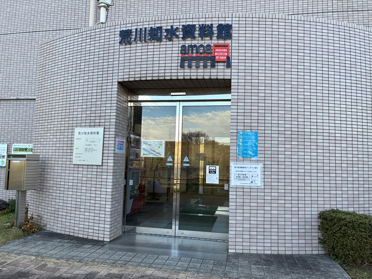 旧岩淵水門から土手下に降りたところに「荒川知水資料館(amoa)」があります。荒川知水資料館は、荒川に関するさまざまな情報をわかりやすく展示した資料館で、荒川をもっと親しむための活動と交流のスペースとなっています。