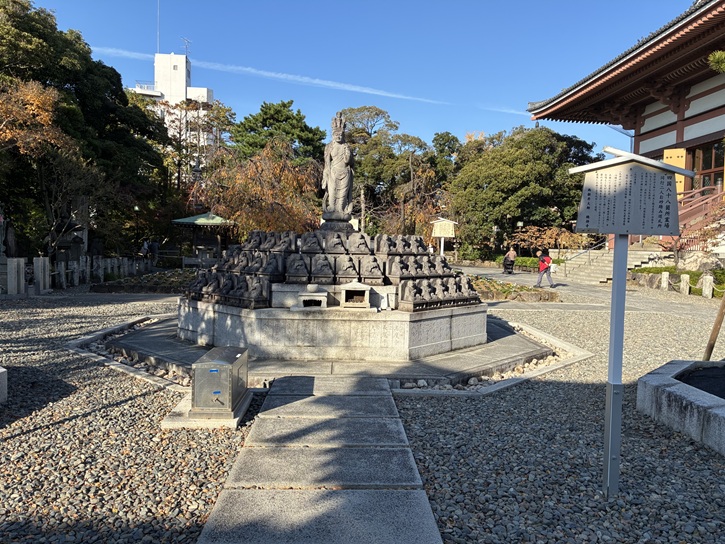 境内には様々な堂や像が建っています。山門を潜った右手には塩地蔵を祀った堂が建っています。塩地蔵は、全身に塩をかぶっていて、その塩をイボにつけると取れるという霊験があります。返礼として、頂いた倍量の塩を納めるしきたりになっています。