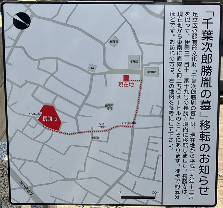 この付近の毛長川南岸の自然堤防上には、擂鉢塚古墳、甲塚古墳、白旗塚古墳など七基からなる白旗塚古墳群が形成されていたとされますが、現存するのは白旗塚古墳のみです。足立区教育委員会が擂鉢山古墳や甲塚古墳の推定地域を調査していますが、確認までには至っていません。擂鉢塚古墳から出土したとされる馬形・円筒埴輪から、白旗塚古墳群の築造は六世紀と推定されます。白旗塚古墳は直径12メートル、高さ約2.5メートルの円墳ですが、未調査のため主体部の構造や古墳の年代はわかっていません。白旗塚という名の由来は、源頼義、義家父子が、奥州安倍氏の反乱(前九年の役)の鎮圧にむかう途上に、この地に白旗を立てたためと言われています。