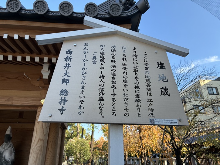 ここに安置の地蔵菩薩は、江戸時代より特にいぼ取りその他に霊験ありと伝えられ、御堂内の塩をいただきその功徳ある時、倍の塩をお返しするところから塩地蔵と申し諸人の信仰盛んなり。