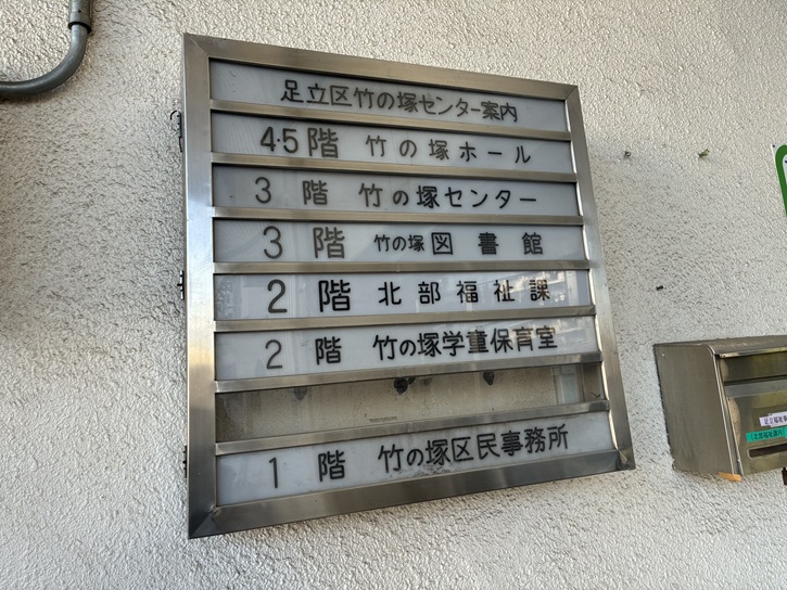 竹の塚センター通りに出て北方向に進みます。竹の塚センター前交差点の角に、竹の塚地域学習センターがあります。竹の塚地域学習センターは、文化活動・体験や研修など様々な学習の機会を提供し、サークル等の自主的な活動を支援する生涯学習のための施設です。部屋の貸出・多様な講座の開催・図書館の利用など、様々な事業の他、特色としてコンサートの開催なども行っています。