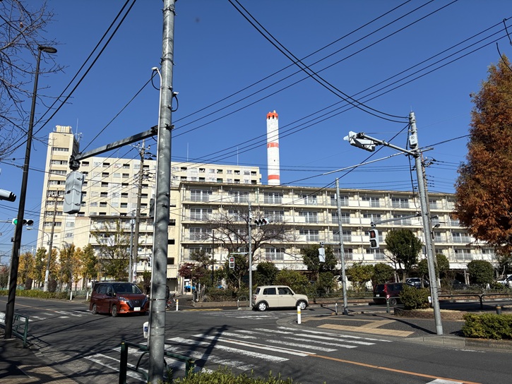 足立清掃工場は、東京二十三区清掃一部事務組合の清掃工場で、人口約70万人を擁する足立区内のごみ処理を行っています。足立区でのごみ処理は足立塵芥焼却場(昭和十一年)が起源で、埼玉県との都県境にほど近い竹ノ塚地区にあります。発生した余熱はスイムスポーツセンター(うきうき館)で利用されています。昭和三十九年(1964年)に日本初の大規模連続焼却炉である初代の工場が竣工し、昭和五十二年(1977年)に250tの焼却炉が4炉ある二代目の工場が竣工し、三代目の現在の清掃工場は平成十七年(2005年)に完成しました。煙突の高さは130mで、赤と白が斑になった足立清掃工場の煙突は、令和七年(2025年)に竣工したシティタワー千住大橋に次ぐ高さを誇っています。