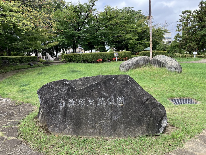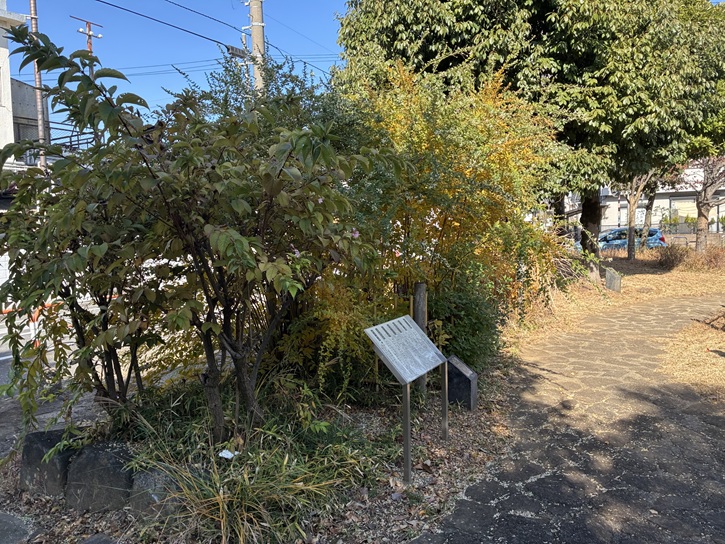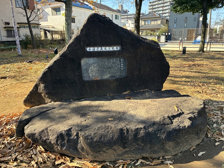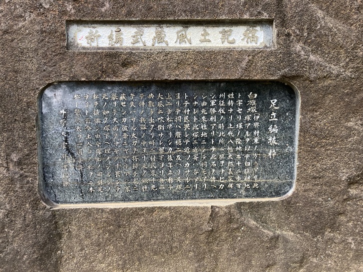 公園内には白旗塚にまつわる「新編武蔵風土記稿」を引用した石碑が建っています。