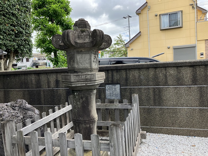周囲に堀を巡らした円墳があります。5〜6世紀頃に築造されたと推定される直径12m・高さ2.5mの円墳の上には小さな祠が建っています。