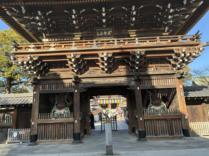 西新井大師に着きました。環七から続く長い参道の先に山門があります。