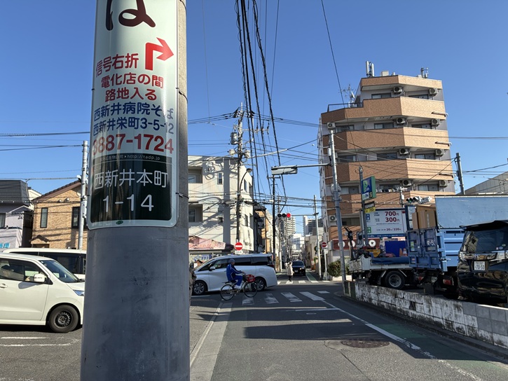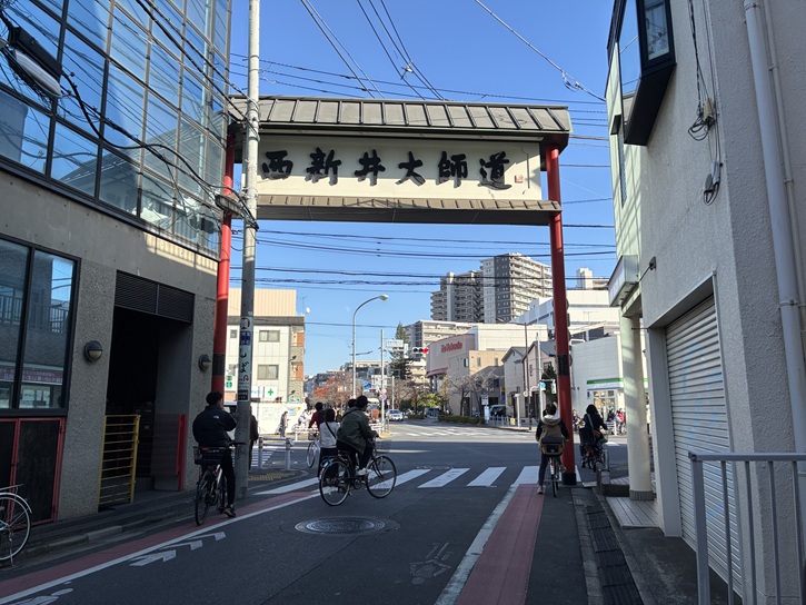 西新井大師を出て、環七を渡り、西新井大師道を尾竹橋通りに向かって進みます。