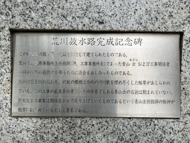 荒川放水路開削の工事で忘れてはならない人物が、青の水門脇の案内板にあった青山士です。