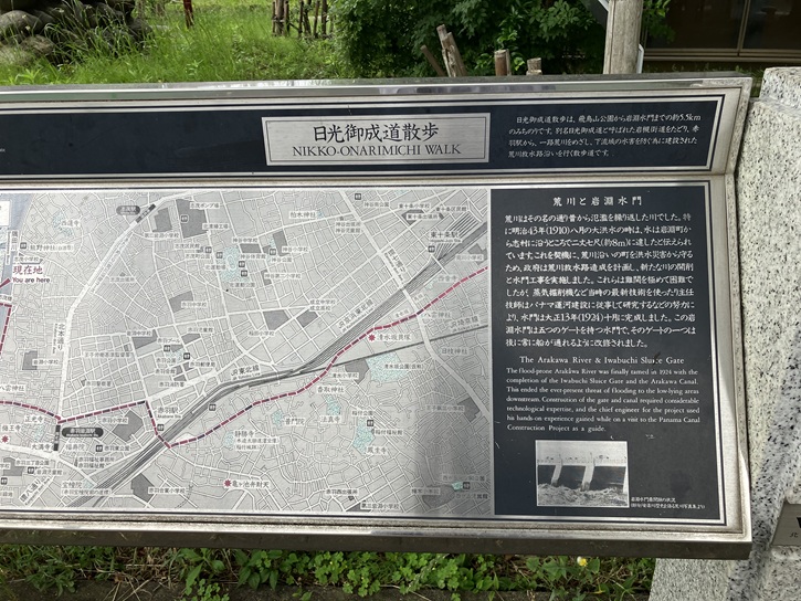 The flood-prone Arakawa River was finally tamed in 1924 with the completion of the Iwabuchi Sluice Gate and the Arakawa Canal. This ended the ever-present threat of flooding to the low-lying areas downstream. Construction of the gate and canal required considerable technological expertise, and the chief engineer for the project used his hands-on experience gained while on a visit to the Panama Canal