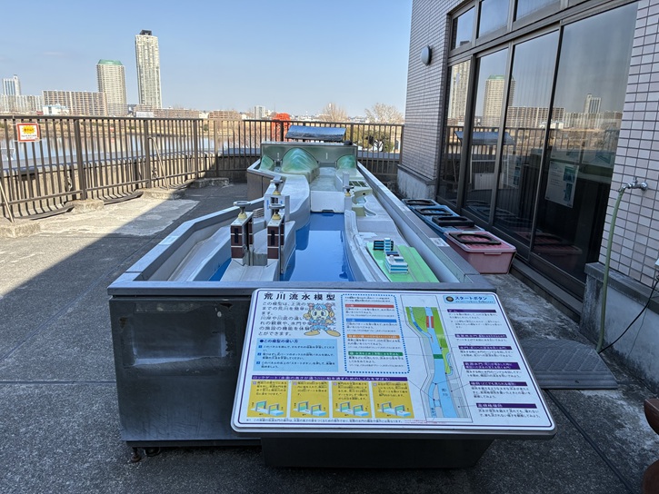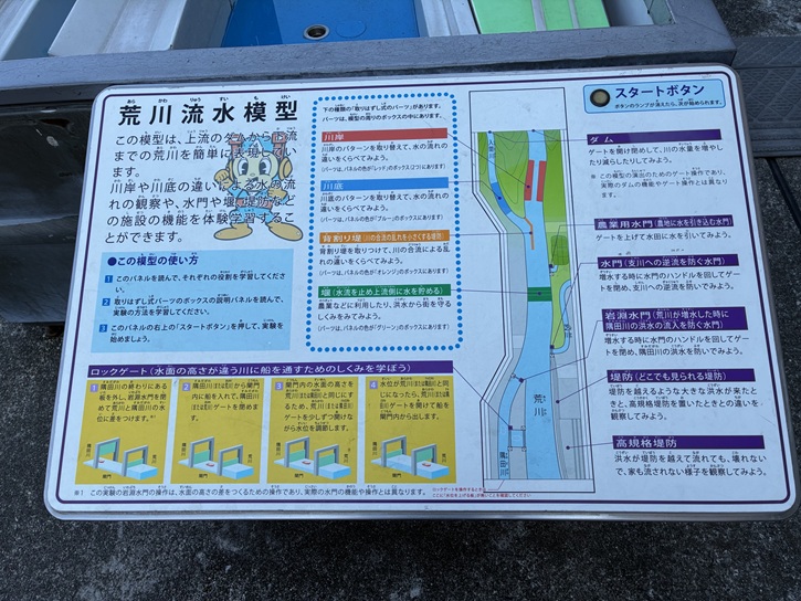 荒川流水模型は、ボタンの操作やパーツを取り外すことによって、荒川の水の流れを学習することができます。