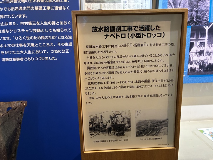 放水路掘削工事で活躍したナベトロ(小型トロッコ)
