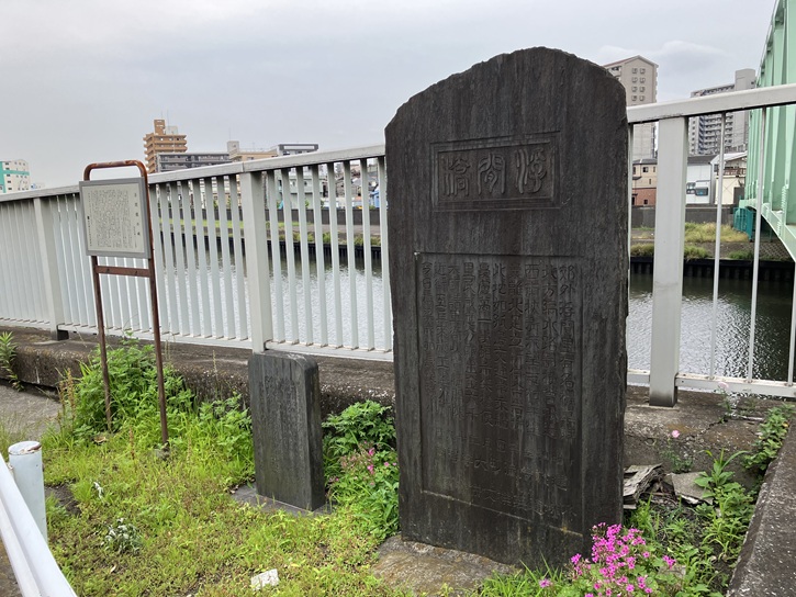 橋の袂に記念碑が建っています。