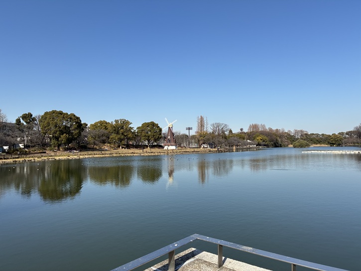 公園面積の約40%を占める浮間ヶ池では、コイやヘラブナなどの釣りが無料で開放され、一年中釣人が絶えません。池の畔には公園のシンボルとして設置された風車が一基あります。風車は公園の見どころのひとつで、季節によってさまざまな景色を見せてくれるほか、期間限定でライトアップが行われることもあります。