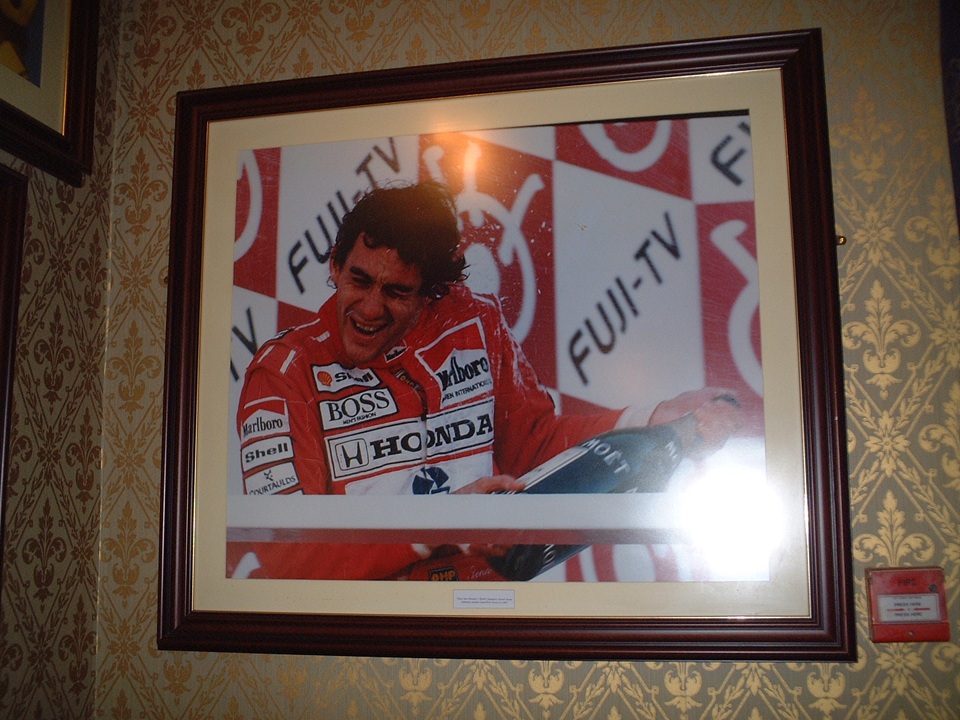 宿泊はサ−キット内のホテルでしたが、殆どがF1関係者で、館内にはF1ドライバーも多数宿泊していました。バーにはセナのポートレートも掲げられていました。