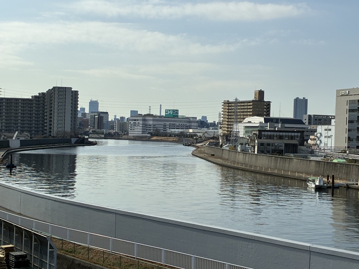 埼京線の高架の直ぐ隣に浮間橋が架かっています。浮間橋は新河岸川に架かる橋です。新河岸川は埼玉県と東京都を流れる一級河川で、荒川水系隅田川の支流です。武蔵野台地北部に降った雨を集めた伏流水や入間川からの水田用水を水源とする赤間川が埼玉県川越市上野田町の八幡橋付近で新河岸川と名前を変え、川越の市街地の北側を回り込むように流れた後で、川越市大字砂付近で不老川、川越市大字南田島付近で九十川と次々に流れ込む支流を合わせながら荒川の西岸沿いを流れ、北区の岩淵水門先で隅田川に合流します。