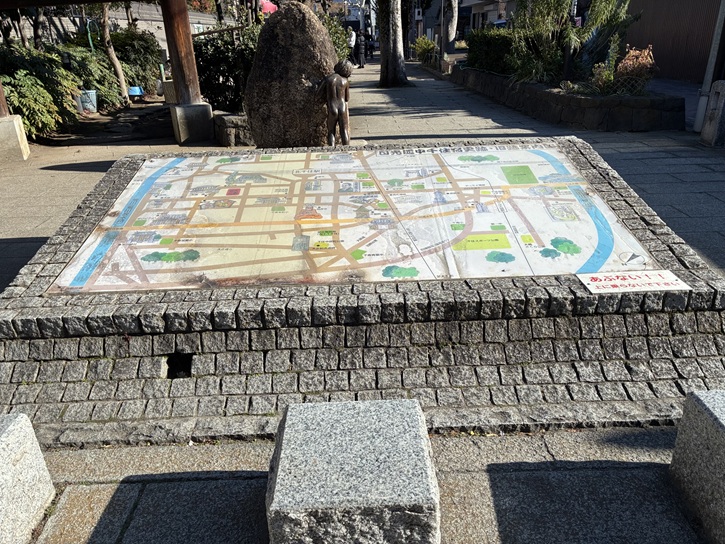 石造りの土台の上に、千住宿史跡・旧跡案内図があります。あまりに大きいので、俯瞰しずらいですね。