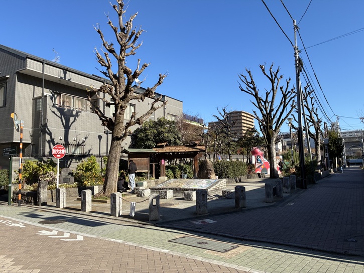 千住本町公園は旧日光街道の宿場通りに面した公園で、かってこの地域は日光街道の宿場町として栄え、その歴史も感じられる公園となっています。