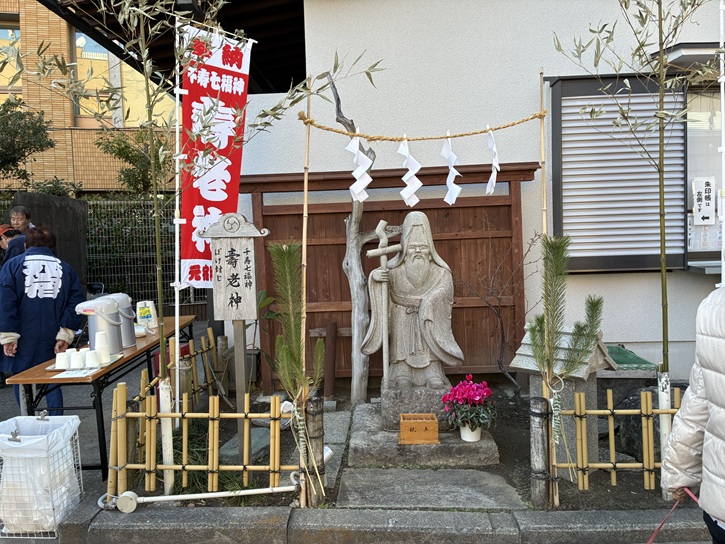 本宿神社は、千住七福神の寿老人を奉祀しています。寿老人は、右手に宝杖を持ち、「無病息災」「延命長寿」「ぼけ封じ」の神様です。家族を病気やケガから守り、開運長寿とぼけ封じに御利益があります。