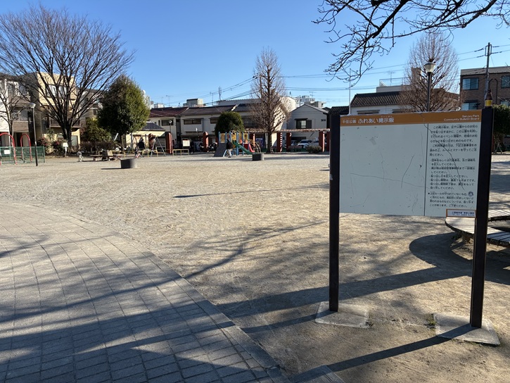 公園のある千住大川町と川田耕地の関わりを記した案内板が立っています。