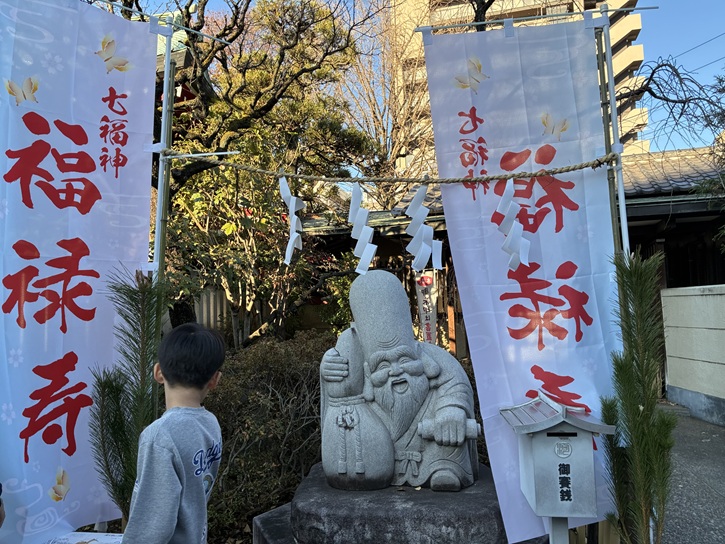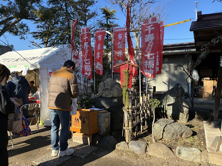 千住本氷川神社は、千寿七福神の大黒天を奉祀しています。千寿七福神巡りは、千住で居酒屋を営む氷見富次さんらが中心となり、平成五年(1993年)に7つのご神体を揃えて開始されました。