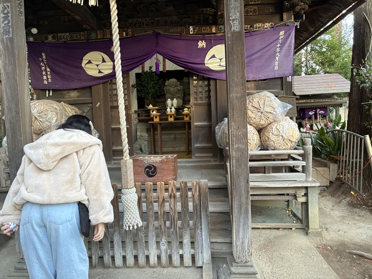 江戸時代に奉納され、全国的にも珍しい子を抱えた姿になっております。家内安全・安産・良縁。狛犬像に触れられて、御神コ・御守護をお受けになられて下さい。
