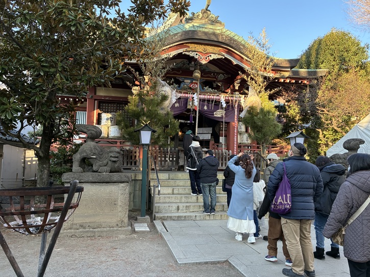 北千住では、毎年元旦に千住七福神を構成する社の町会が神輿を担ぐのが恒例になっています。神輿は、このあと訪れる大川町氷川神社から千住神社まで練り歩きます。今年は元旦のお節もそこそこに頑張って来たのに、着いた時は神輿が出立した後でした。残念!ちなみに、担ぎ上げの神社は毎年大川町氷川神社のようですが、動画を見ますと担ぎ手にはいろんな町会が入り交じっています。担当する町会が準備・接待その他を行なうことになっているのでしょうか?