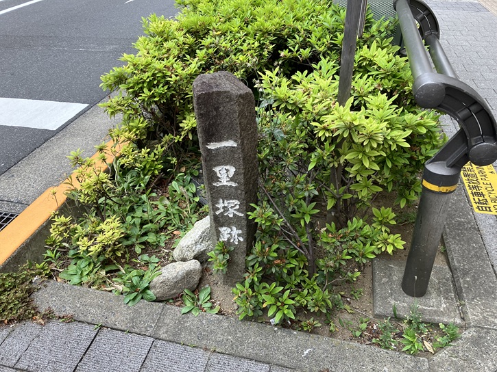 足立成和信用金庫前の交差点の向かいの歩道の植え込みの端に、「千住一里塚跡」の石碑が立っています。旧日光街道で日本橋から二里目の一里塚が設けられていた場所です。昭和四十九年(1974年)に建立されたそうです。