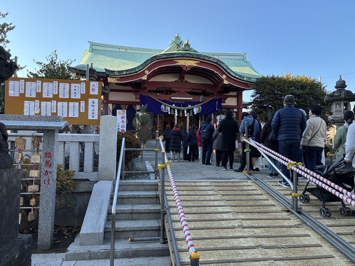 本宿神社は、普段は静かですが、お正月には初詣の人たちで混雑します。